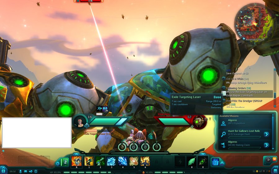 You've discovered a dead merc whose final orders were to paint targets for Exile artillery - specifically, the Eldan repair constructs circling the giant Annihilator at Annihilator Silo 14 . Finish his mission.